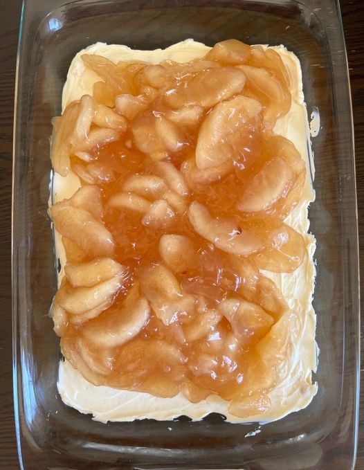 Ingredients (2) 8 oz packages crescent roll dough (2) 21oz cans apple pie filling (2) 8oz packages cream cheese, softened ¾ cup powdered sugar ½ cup butter (1 stick), melted 3 teaspoons vanilla 2 teaspoons cinnamon Preparation